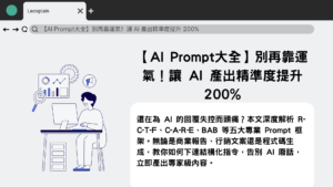 還在為 AI 的回覆失控而頭痛?本文深度解析 R-C-T-F、C-A-R-E、BAB 等五大專業 Prompt 框架。無論是商業報告、行銷文案還是程式碼生成,教你如何下達結構化指令,告別 AI 廢話,立即產出專家級內容。